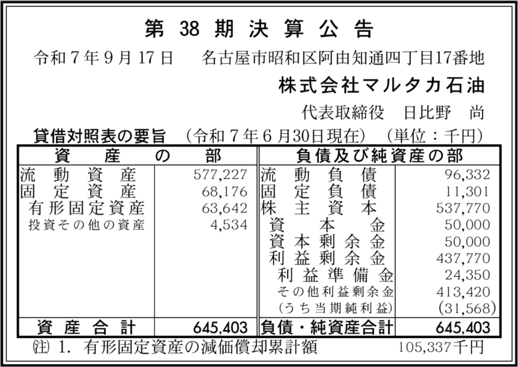 総資産 | 6億4,540万3,000円 (+3.56%) |