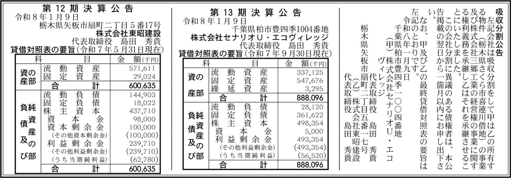 株式会社東昭建設 栃木県矢板市 【2025年5月期】 |
