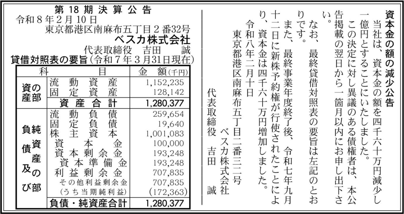 | 会社名 | ベスカ株式会社 |