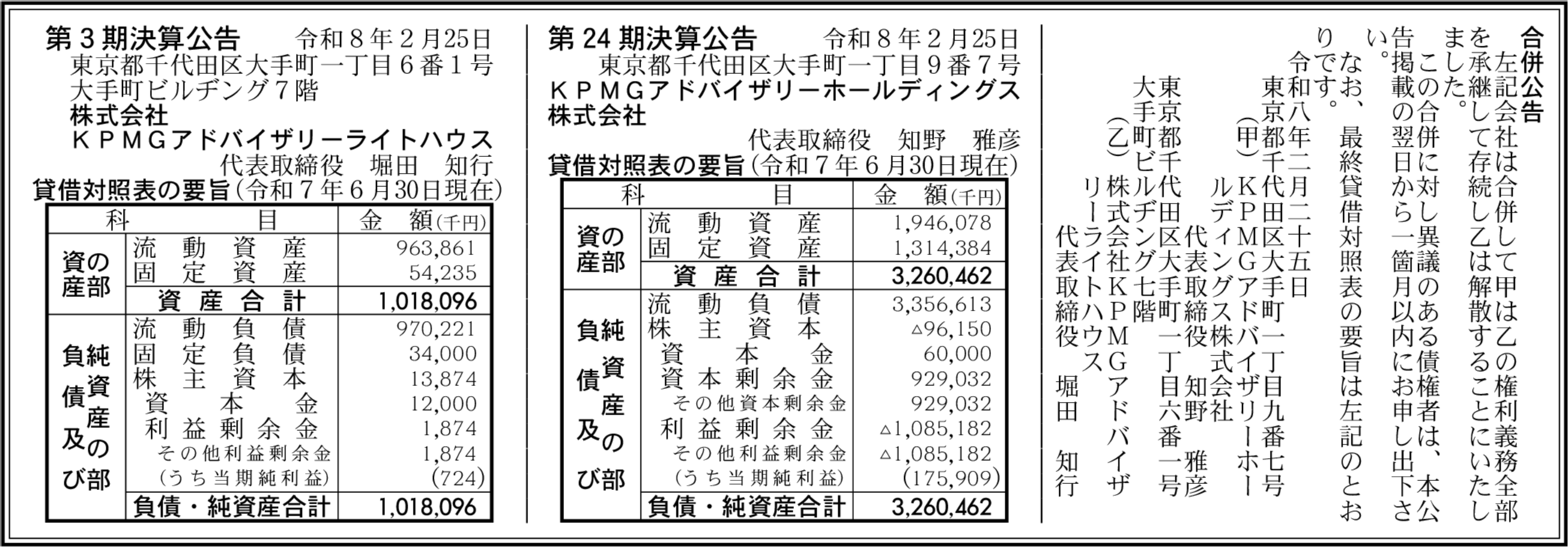 株式会社KPMGアドバイザリーライトハウス 東京都千代田区 【2025年6月期】 |