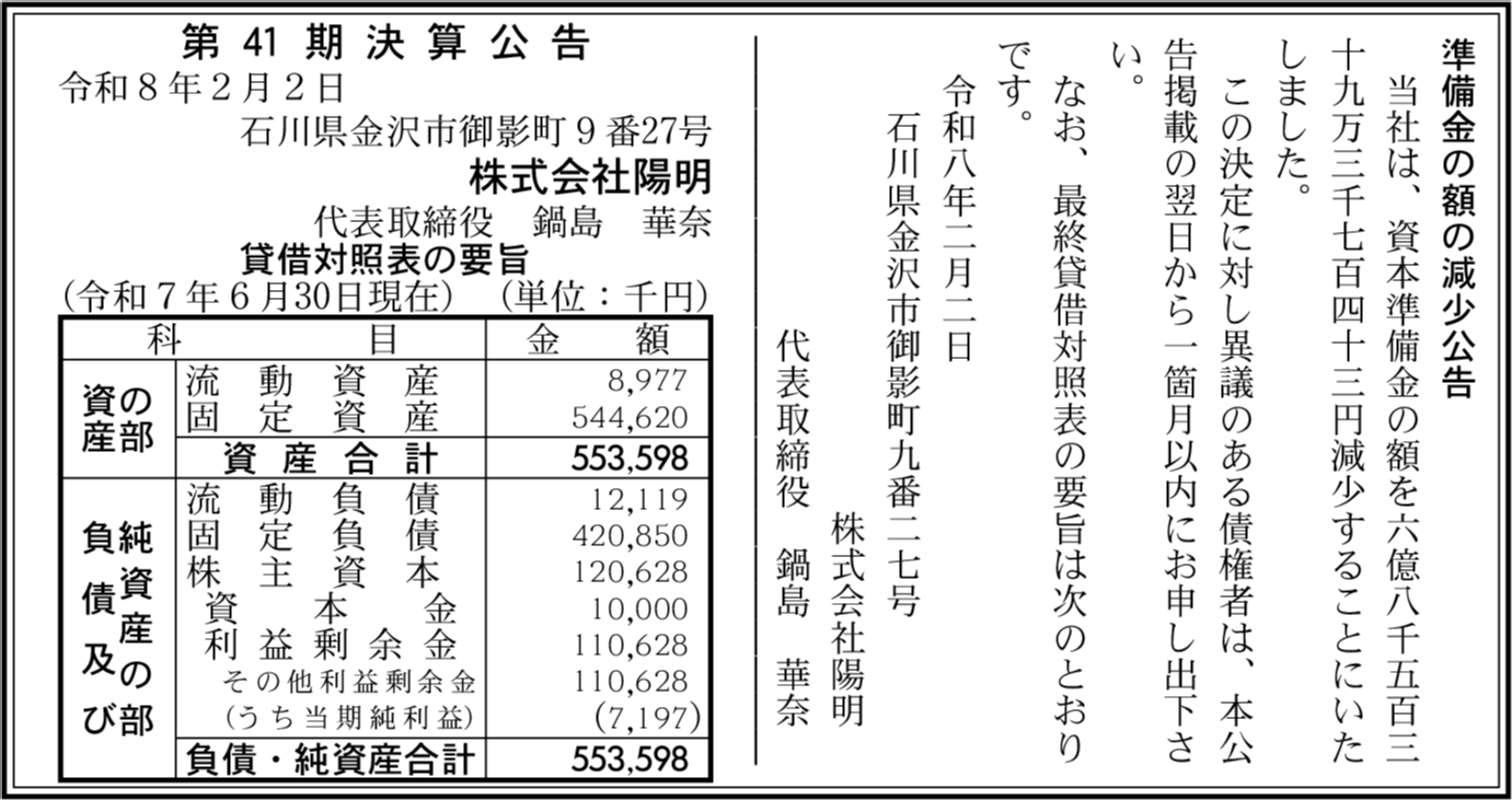| 会社名 | 株式会社陽明 |