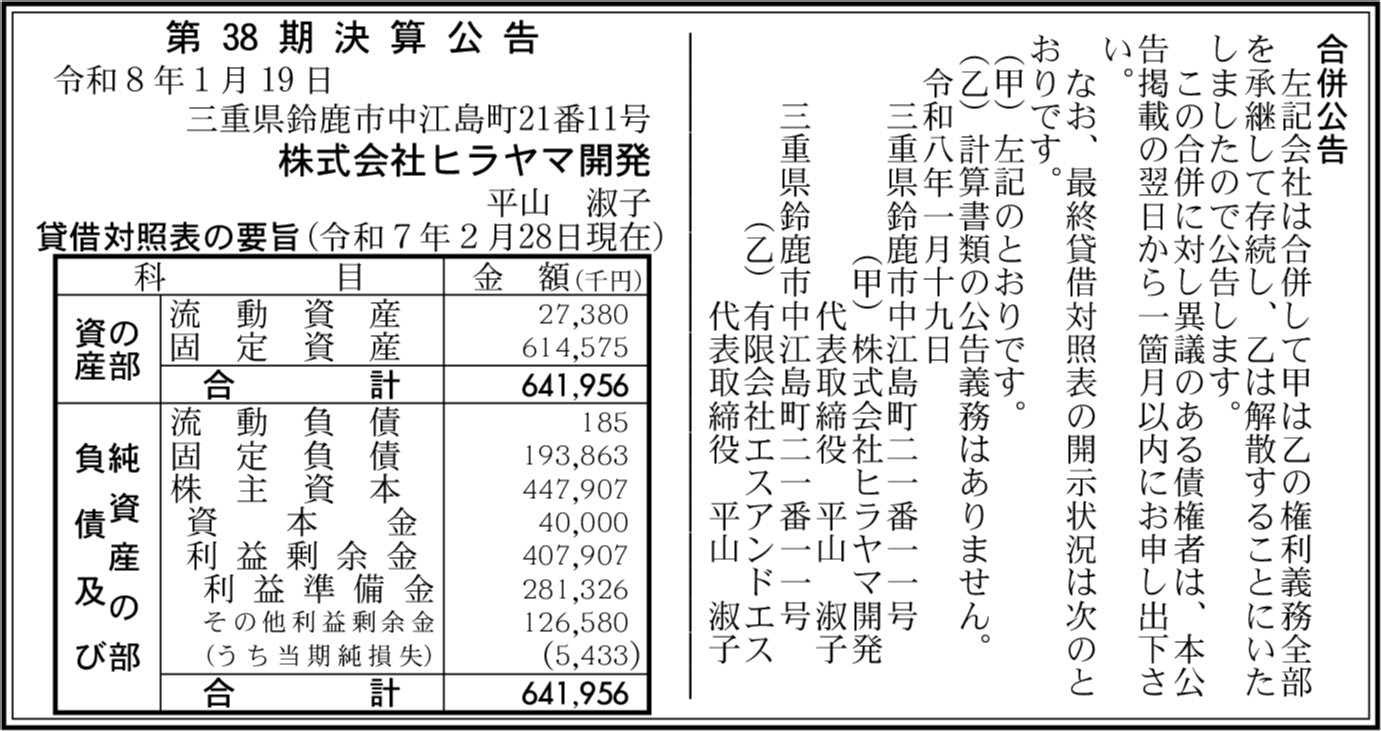 | 会社名 | 株式会社ヒラヤマ開発 |