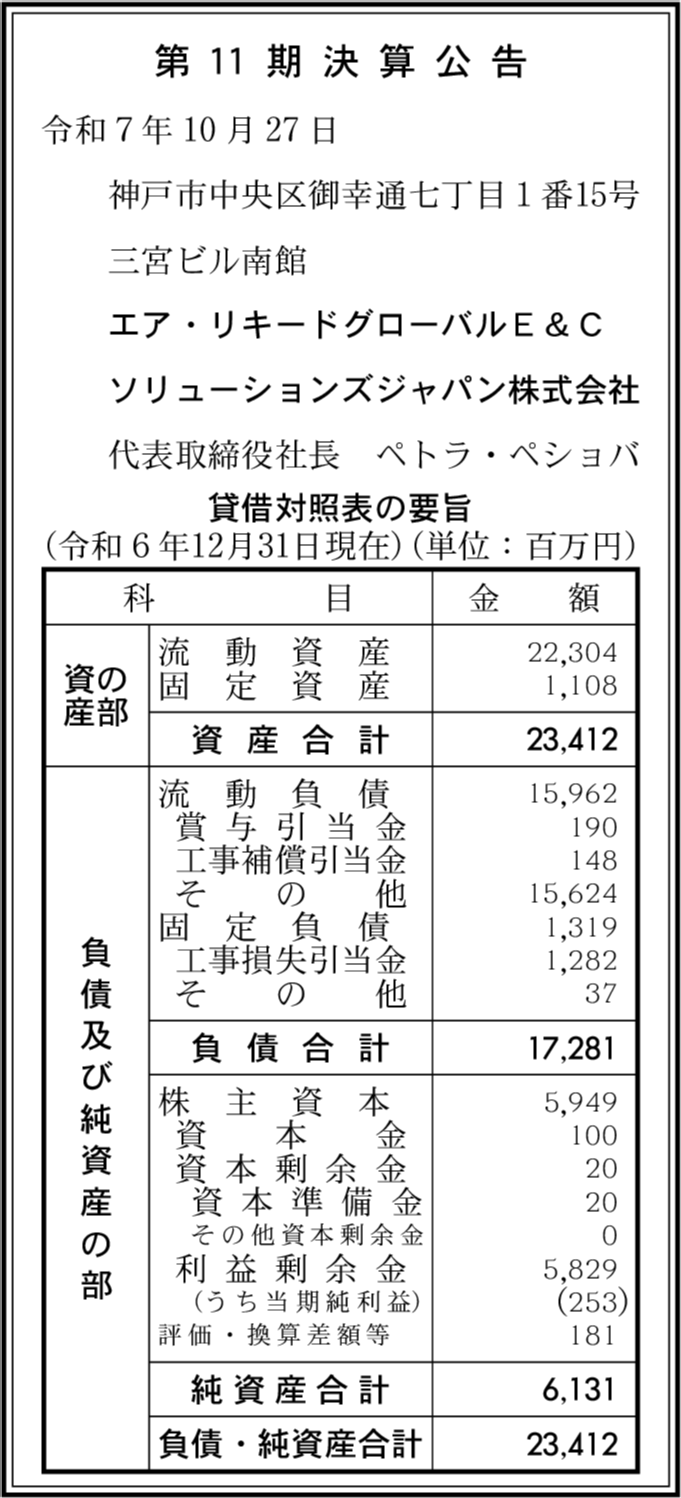 | 会社名 | エア・リキードグローバルE&Cソリューションズジャパン株式会社 |