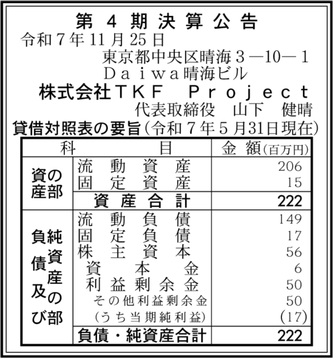 | 会社名 | 株式会社TKF Project |