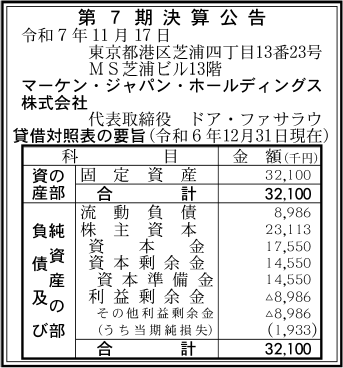 | 会社名 | マーケン・ジャパン・ホールディングス株式会社 |