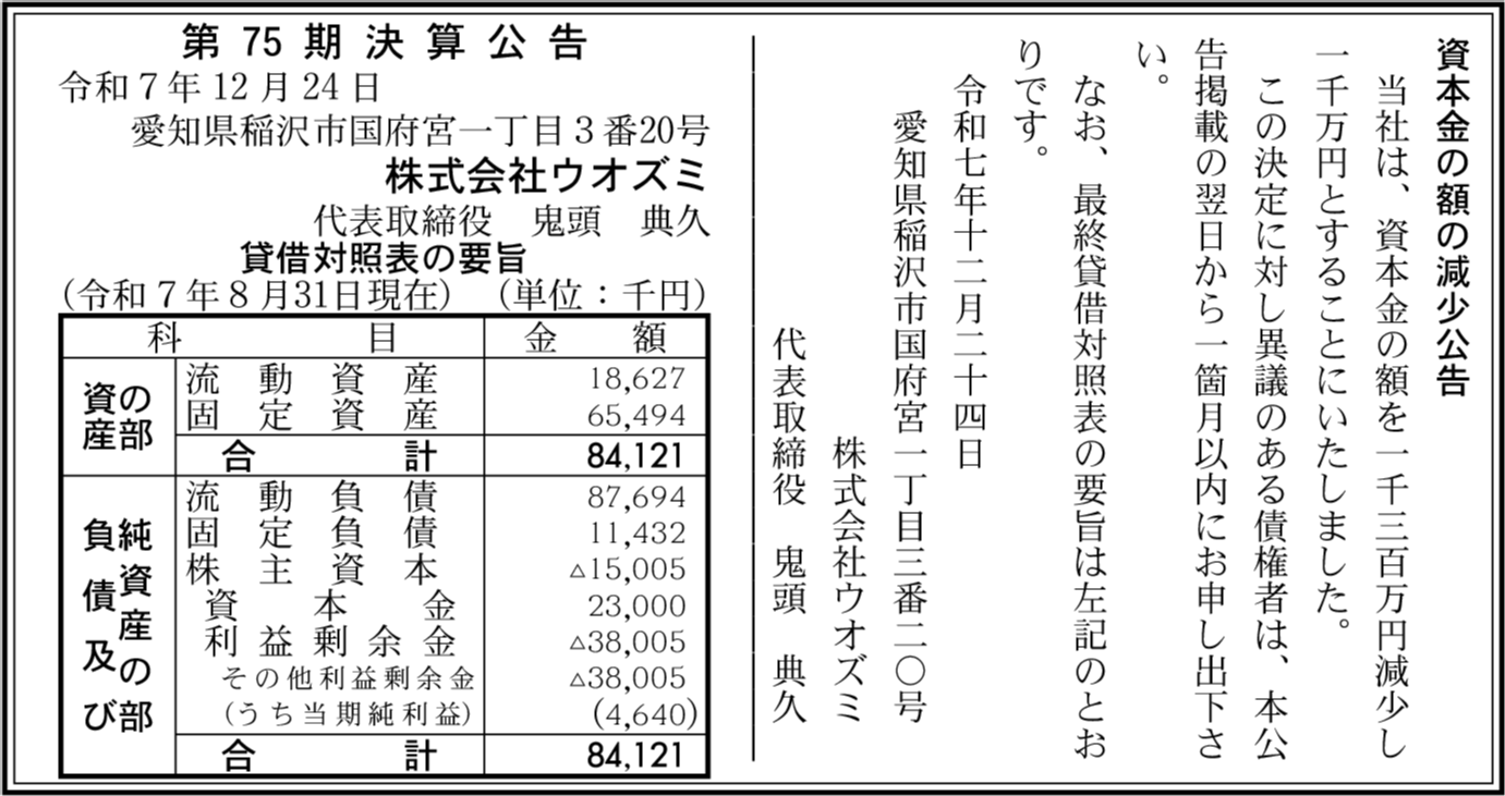 株式会社いのくち閉鎖済み 愛知県稲沢市 【2024年5月期】 |