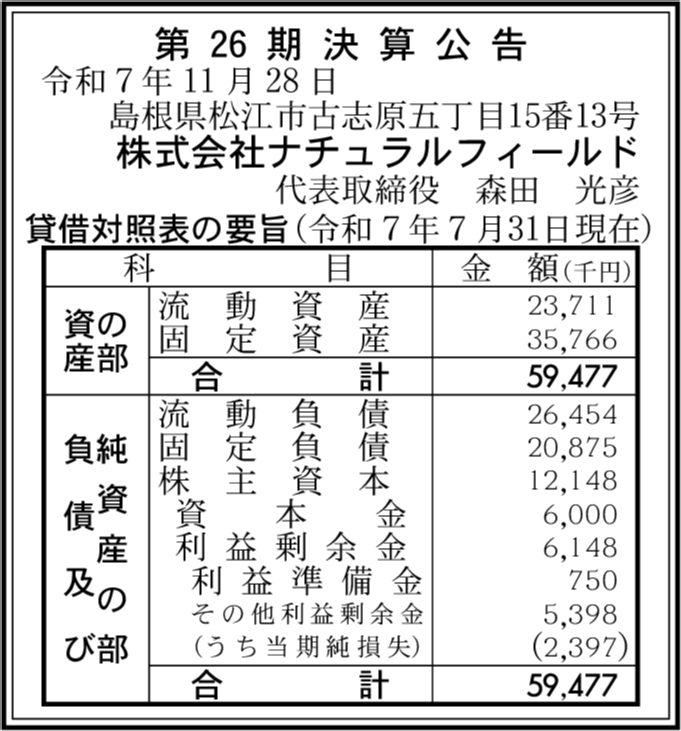 株式会社共立エンジニヤ 島根県松江市 【2025年5月期】 |