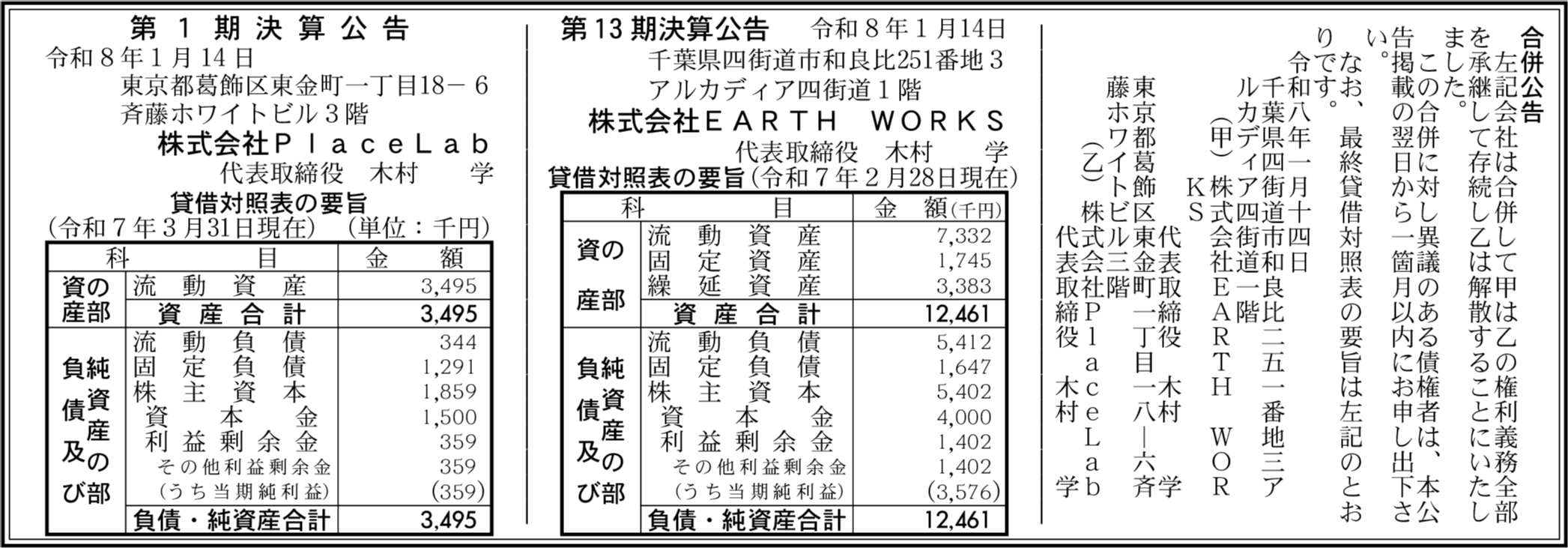 株式会社PlaceLab 東京都葛飾区 【2025年3月期】 |