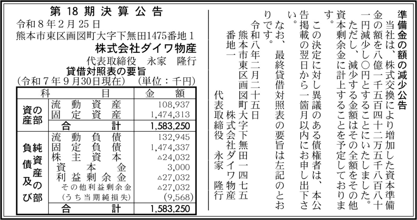 株式会社大邦興産 熊本市東区 【2025年9月期】 |