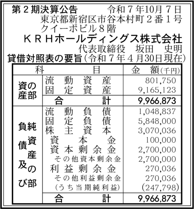 KRHホールディングス株式会社閉鎖済み 東京都品川区 【2023年4月期】 |