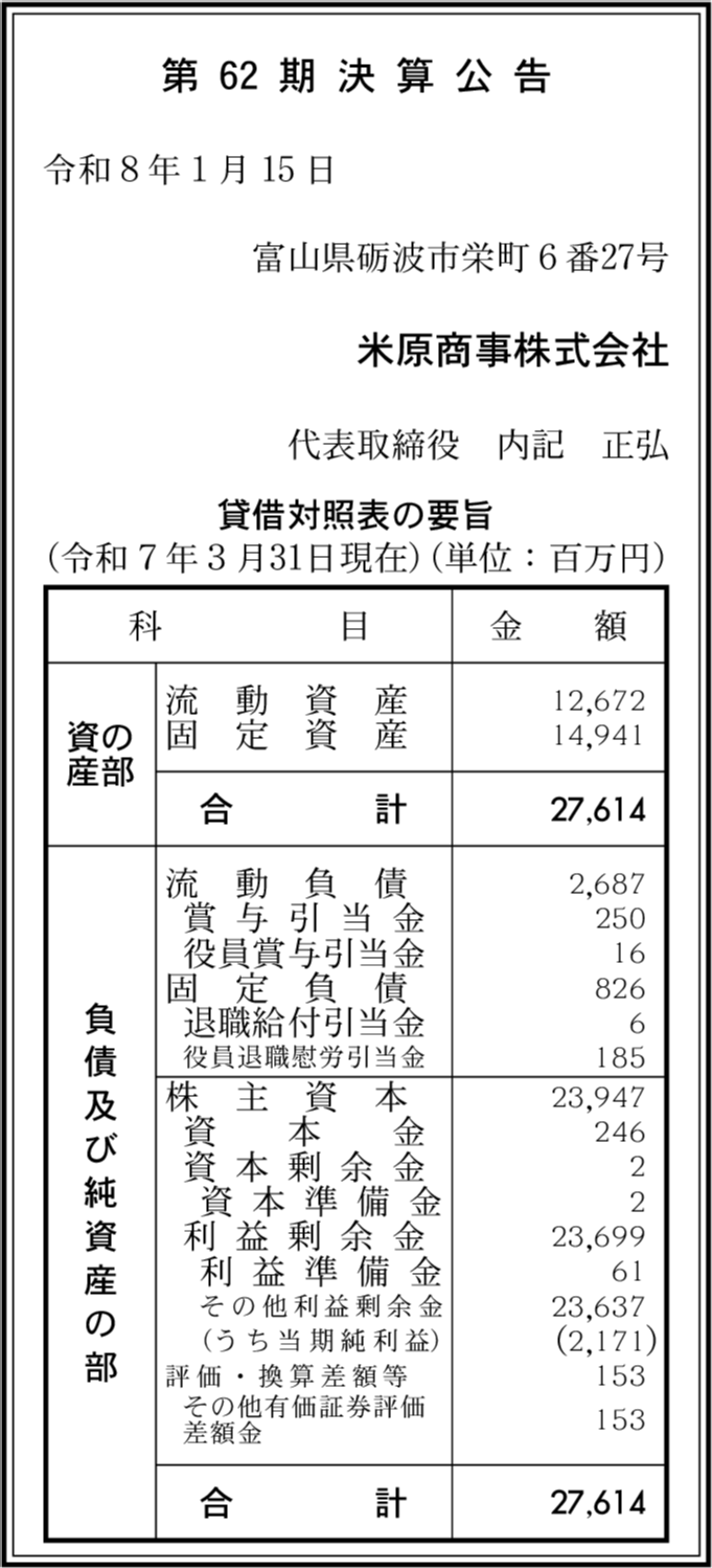 | 会社名 | 米原商事株式会社 |