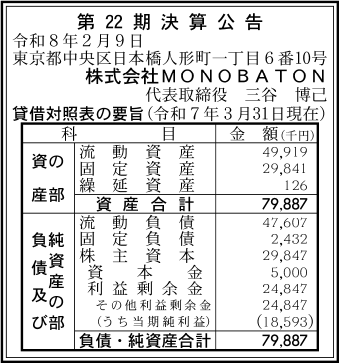 | 会社名 | 株式会社MONOBATON |