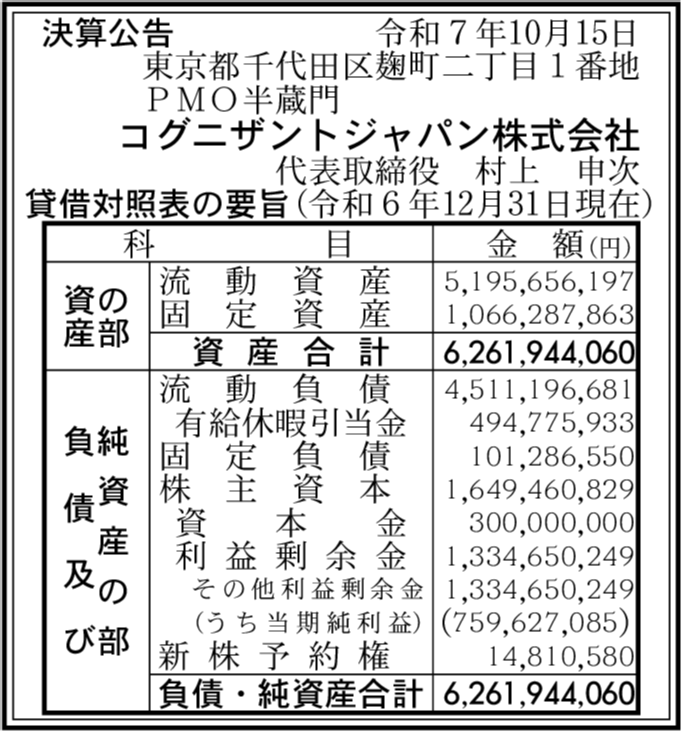 株式会社ブリリアントサービス | 大阪市北区 | △985万5,000円 |