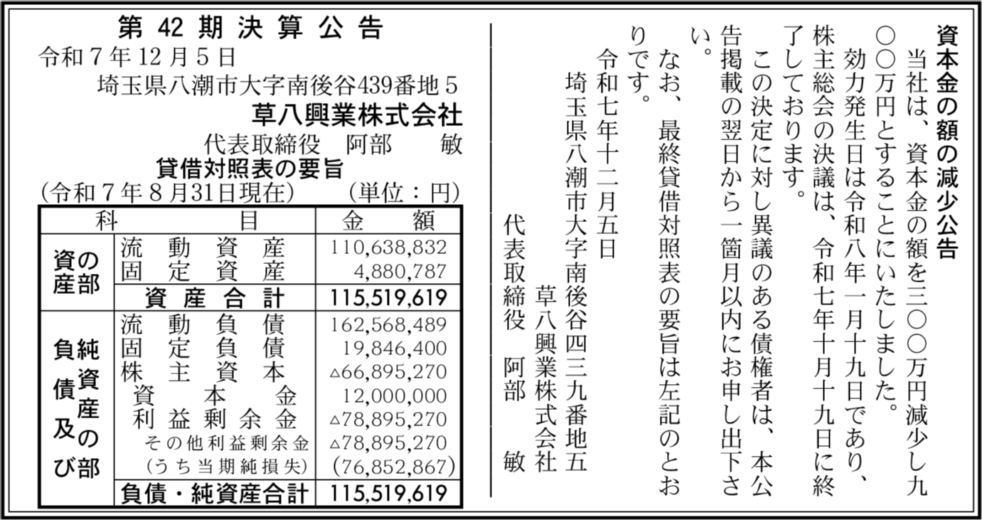 | 会社名 | 草八興業株式会社 |