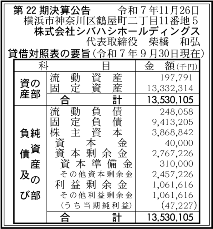 株式会社シバスタッフ 横浜市神奈川区 【2025年9月期】 |