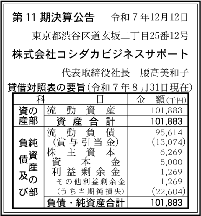 株式会社コシダカビジネスサポート 東京都渋谷区 |