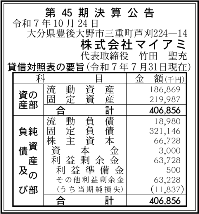 株式会社エフオン豊後大野 大分県豊後大野市 【2024年6月期】 |