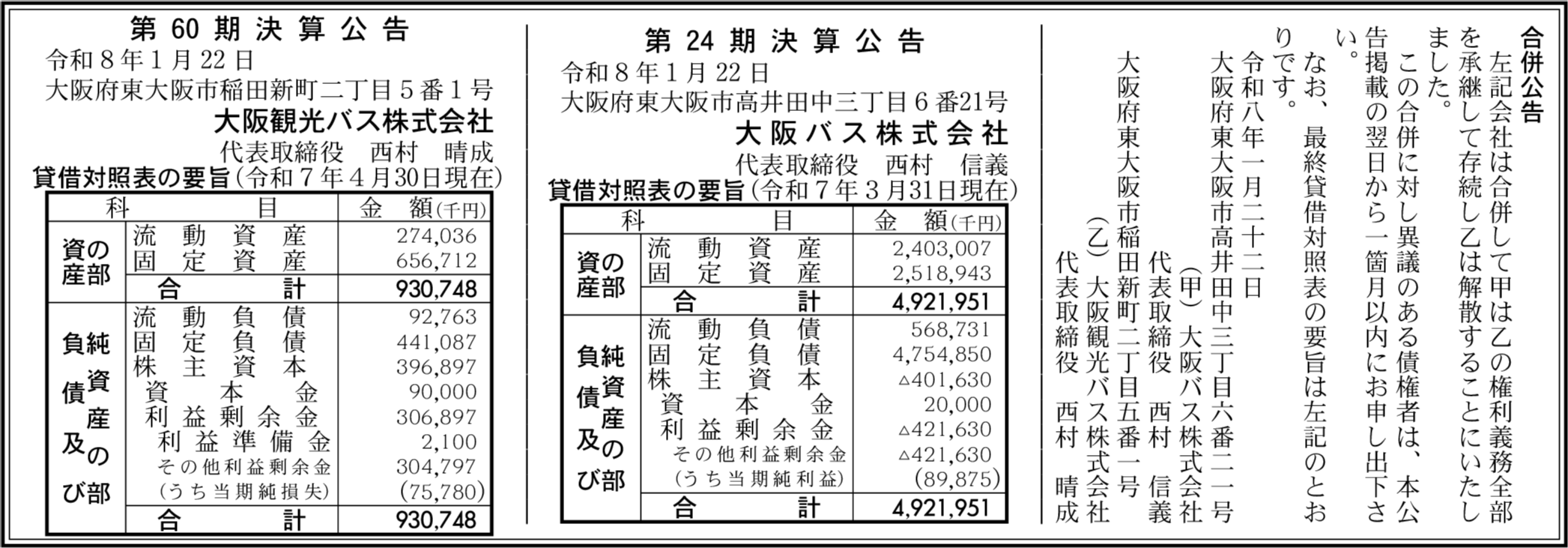 大阪バス株式会社 大阪府東大阪市 【2025年3月期】 |
