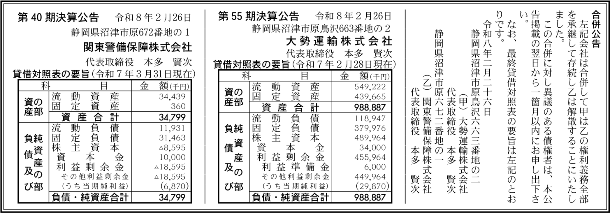 関東警備保障株式会社 静岡県沼津市 【2025年3月期】 |