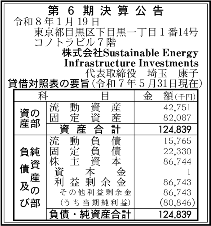 | 会社名 | 株式会社Sustainable Energy Infrastructure Investments |