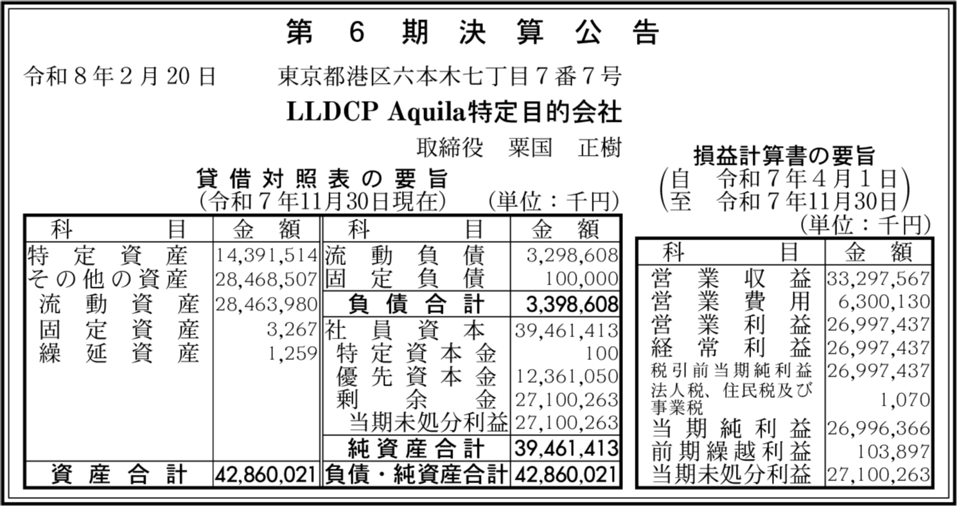 | 会社名 | LLDCP Aquila特定目的会社 |