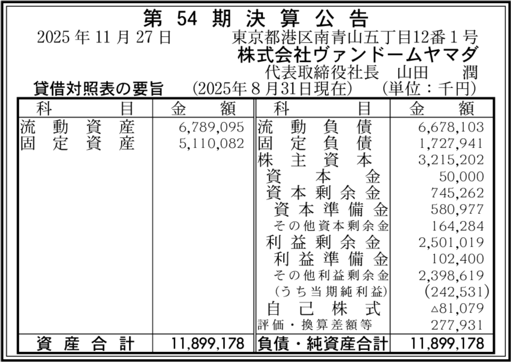 | 会社名 | 株式会社ヴァンドームヤマダ |