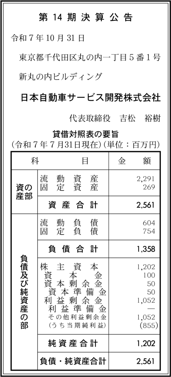| 会社名 | 日本自動車サービス開発株式会社 |