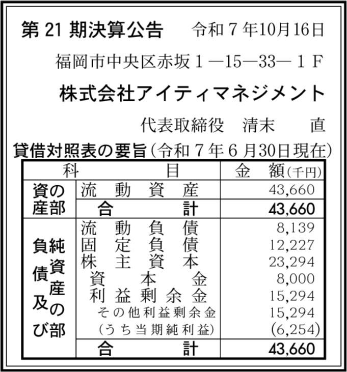 株式会社アイキューブドベンチャーズ 福岡市中央区 【2025年6月期】 |