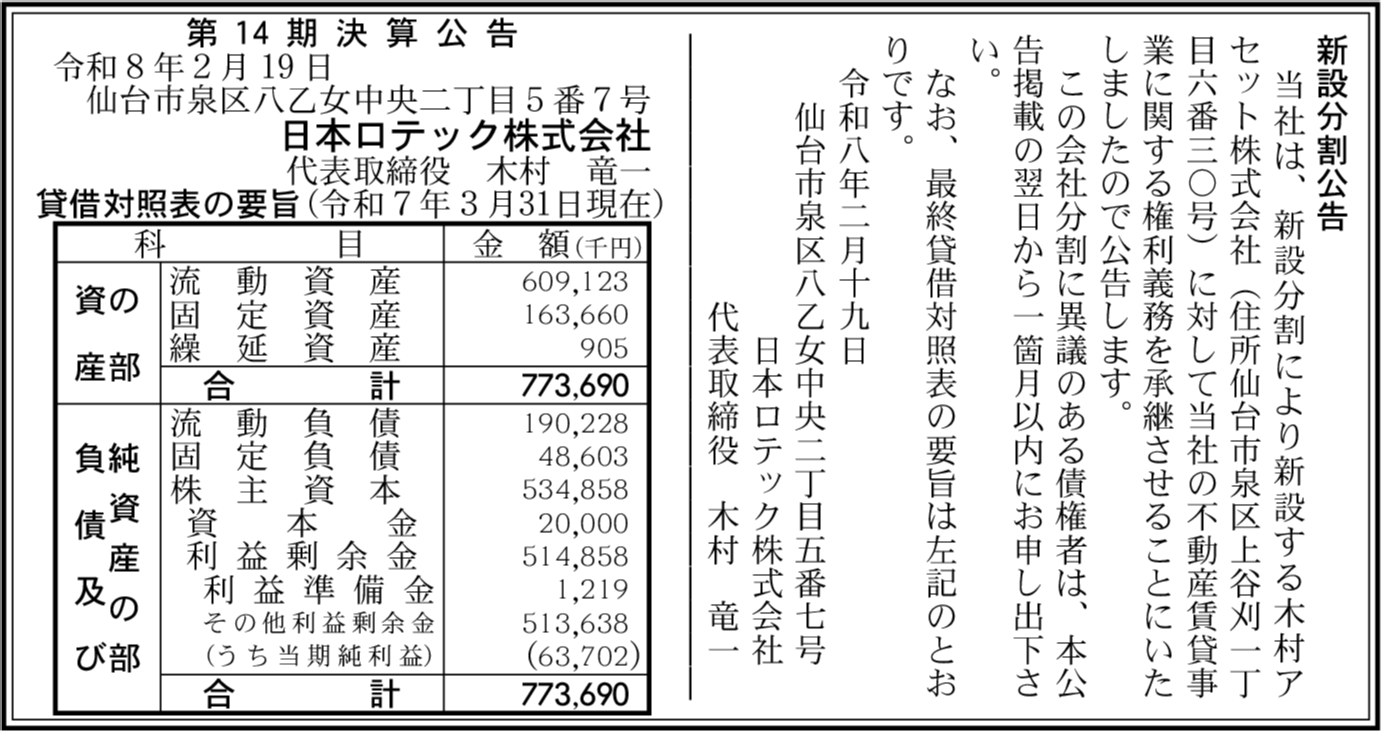 | 会社名 | 日本ロテック株式会社 |