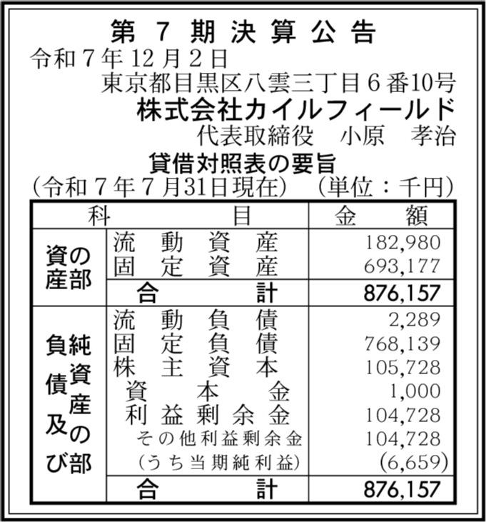 | 会社名 | 株式会社カイルフィールド |