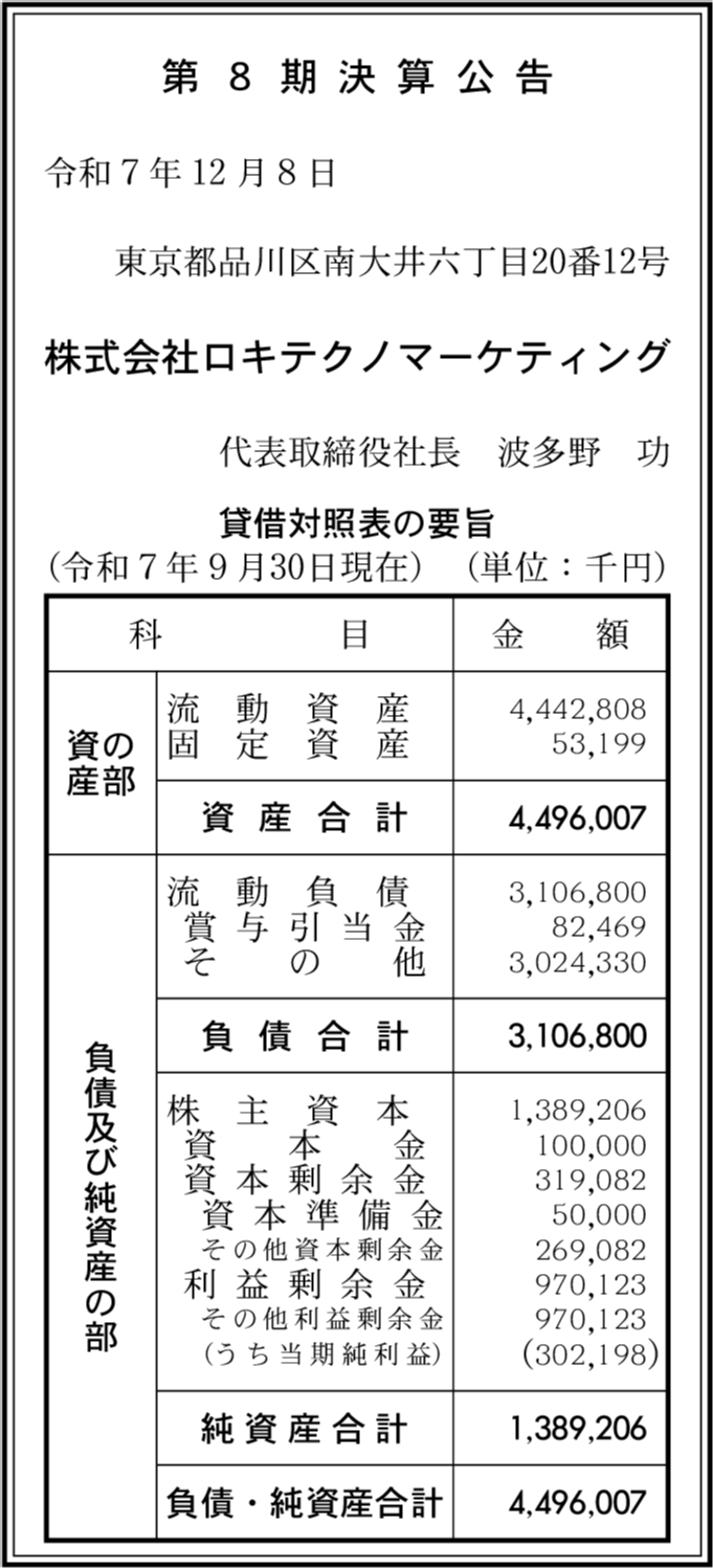 株式会社ロキグループ閉鎖済み 東京都品川区 【2024年9月期】 |