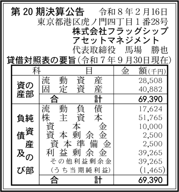 | 会社名 | 株式会社フラッグシップアセットマネジメント |