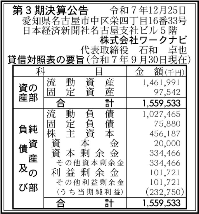 株式会社ワークナビ大府閉鎖済み 愛知県大府市 【2022年9月期】 |