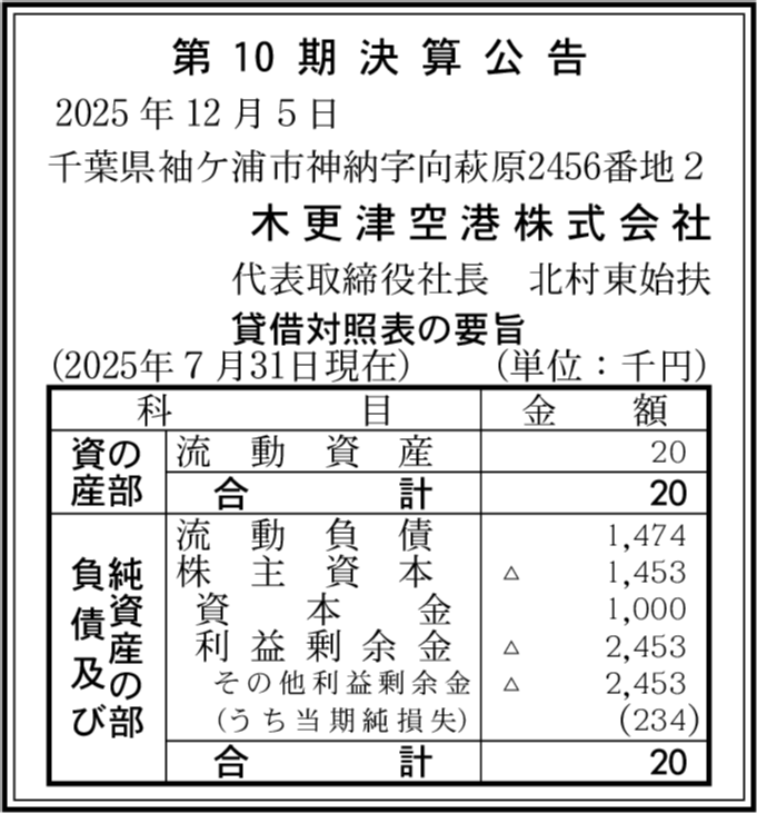 Tokyo Kisarazu Business Aviation Center株式会社 千葉県袖ヶ浦市 【2024年7月期】 |