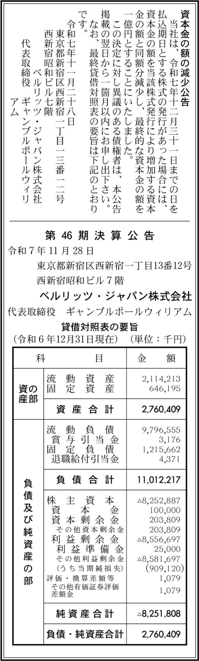 | 総資産 | 27億6,040万9,000円 |