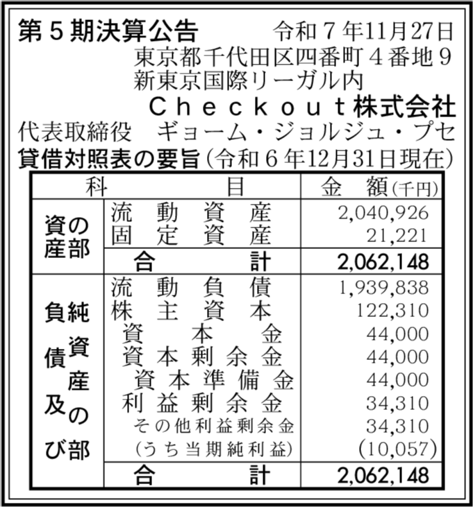 | 会社名 | Checkout株式会社 |
