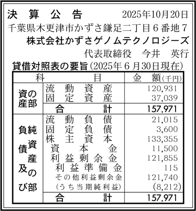 会社名 | 株式会社かずさゲノムテクノロジーズ |