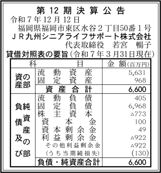 | 会社名 | JR九州シニアライフサポート株式会社 |