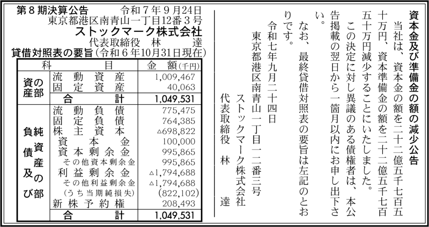 | 純利益 | △8億2,210万2,000円 (赤字拡大) |