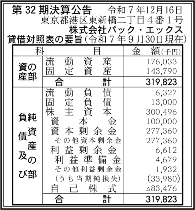 株式会社パック・エックスイノベーション閉鎖済み 東京都港区 【2024年9月期】 |