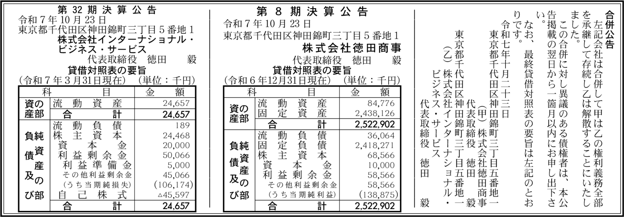 株式会社インターナショナル・ビジネス・サービス 東京都千代田区 【2025年3月期】 |