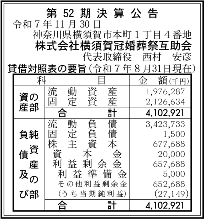 | 会社名 | 株式会社横須賀冠婚葬祭互助会 |