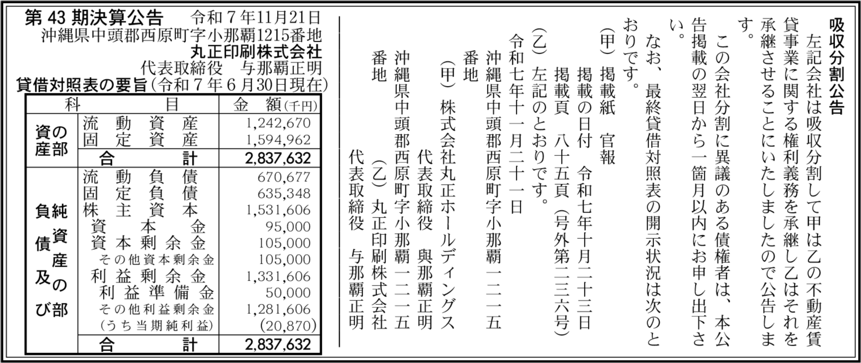株式会社丸正ホールディングス 沖縄県中頭郡西原町 【2025年6月期】 |