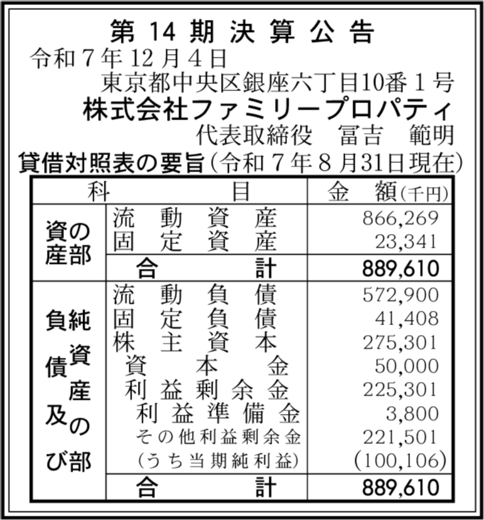 株式会社ファミリーコーポレーション 東京都中央区 【2024年8月期】 |