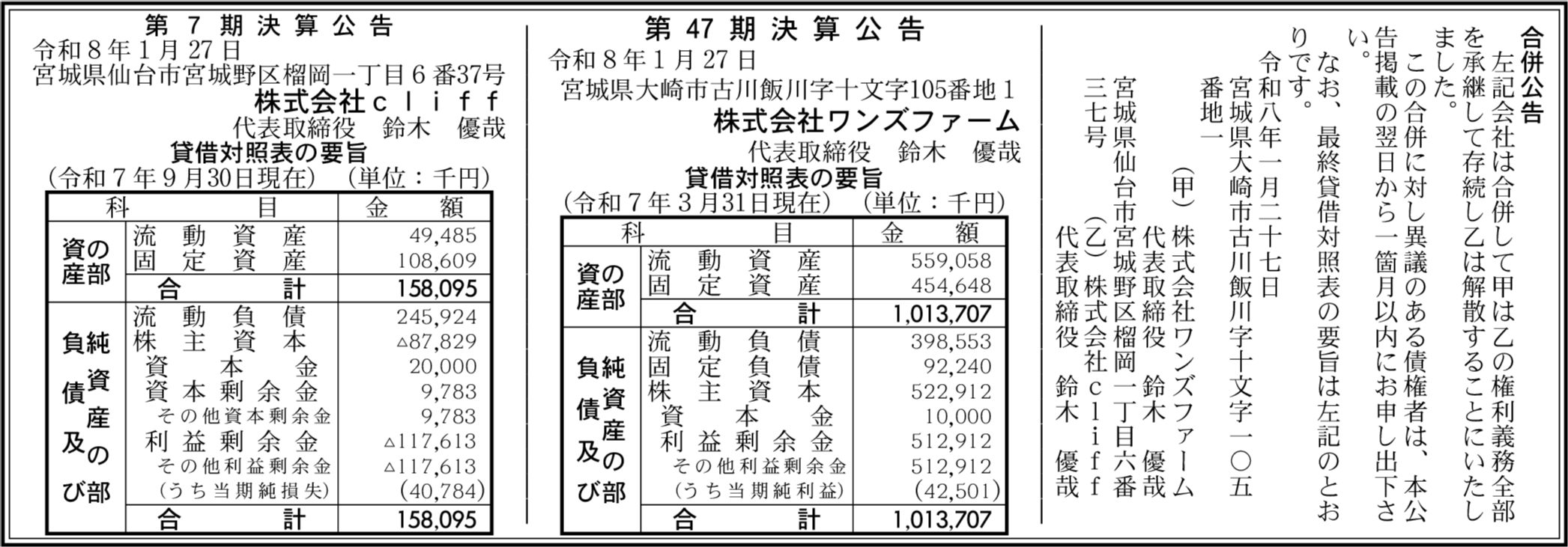株式会社ワンズファーム 宮城県大崎市 【2025年3月期】 |
