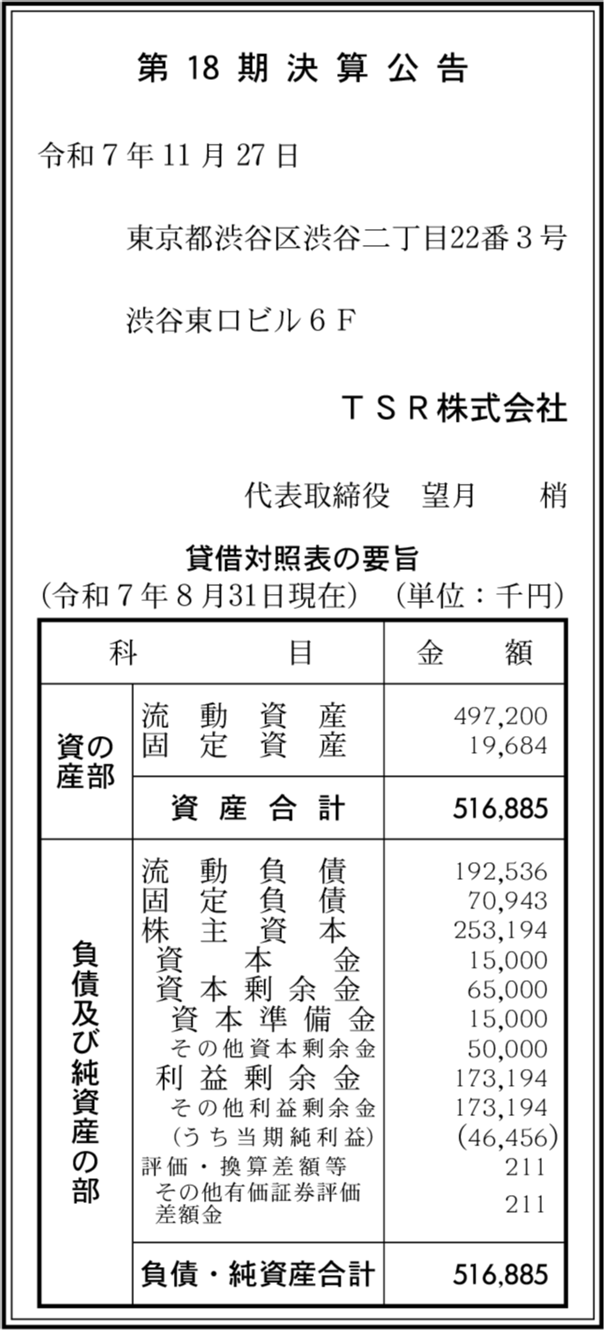 | 会社名 | TSR株式会社 |