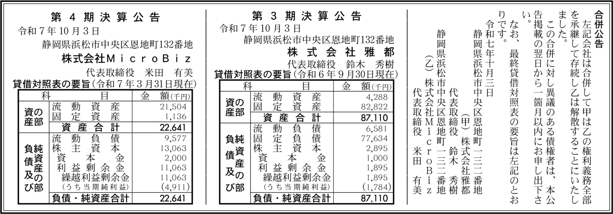 株式会社MicroBiz 静岡県浜松市中央区 【2025年3月期】 |
