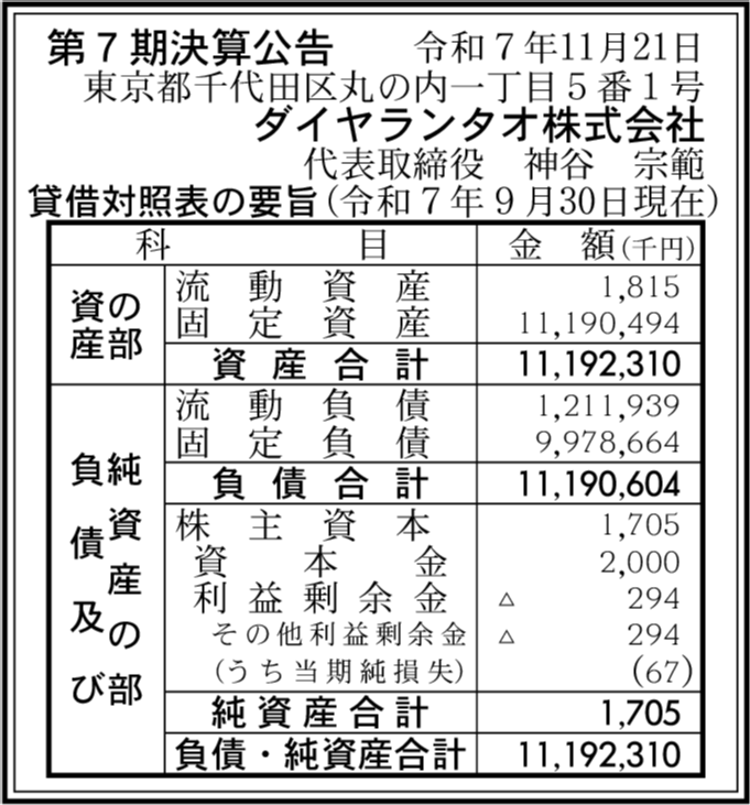 ダイヤラトゥール株式会社 東京都千代田区 【2025年9月期】 |