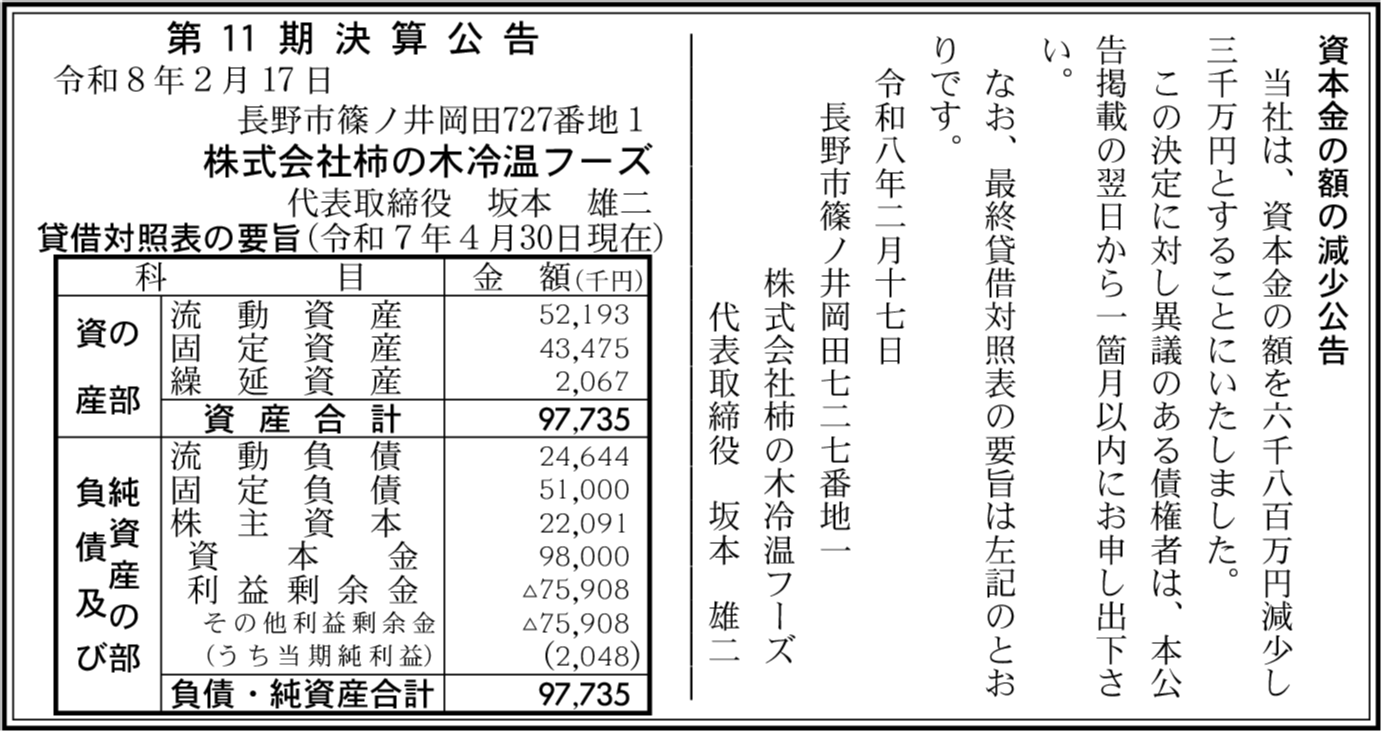 | 会社名 | 株式会社柿の木冷温フーズ |