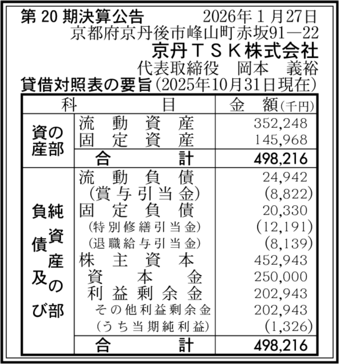 但馬ティエスケイ株式会社 兵庫県豊岡市 【2025年10月期】 |